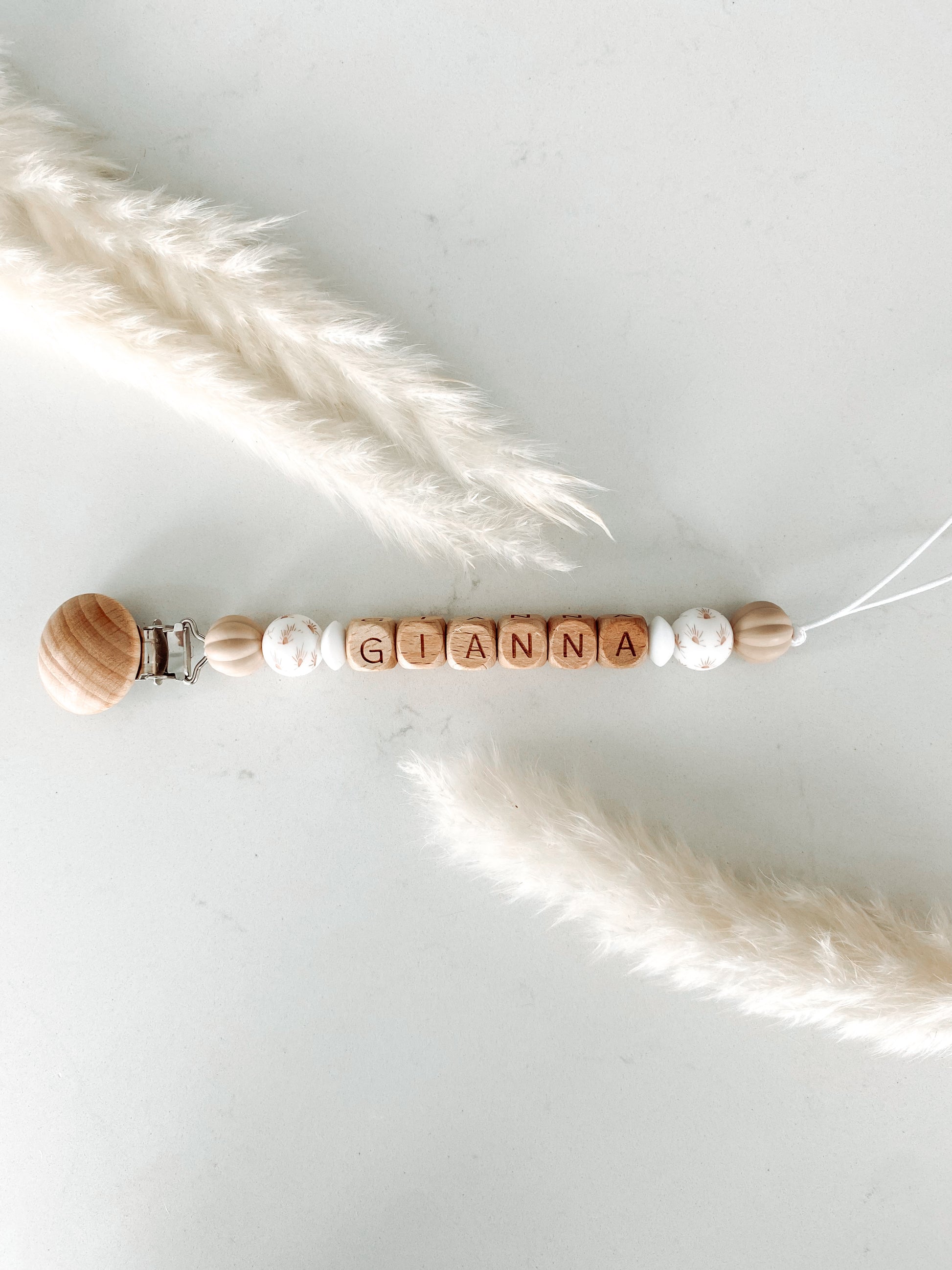 Please Note: the recommended length for a Pacifier Clip is up to 12 beads (approx.) in length; including name. Please keep this in mind while choosing your design. If the name is too long, your order will be refunded as we cannot have the clips longer than approx. 12 beads for safety purposes.